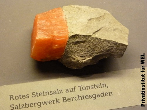 Welteislehre, aufgenommen im Mammutmuseum Siegsdorf) Perfekt getrenntes Rotes Steinsalz aus dem Salzbergwerk Berchtesgaden. Diese perfekte Trennung und Schichtbildung ist nur durch Gefrierung möglich. Es gibt allerdings einige zu